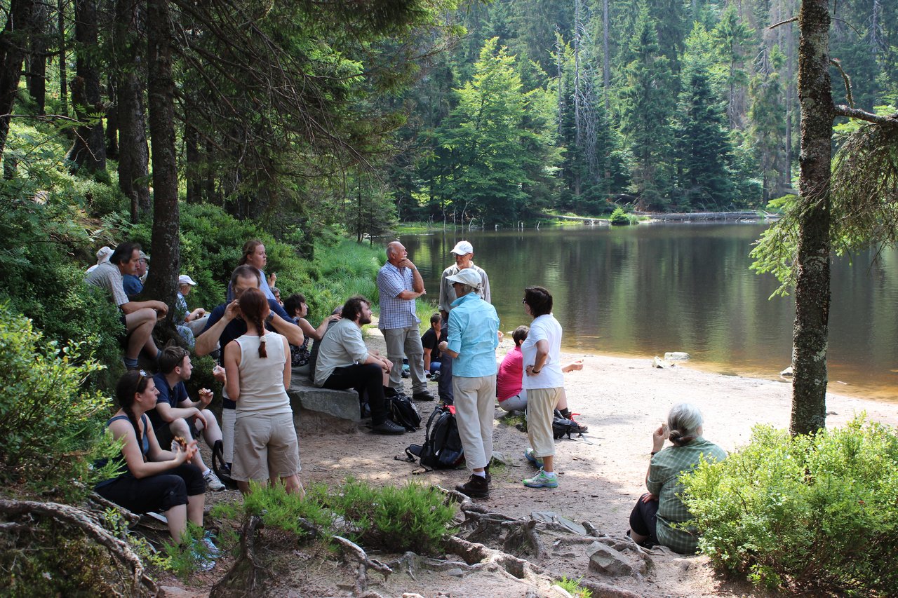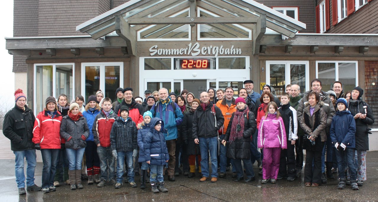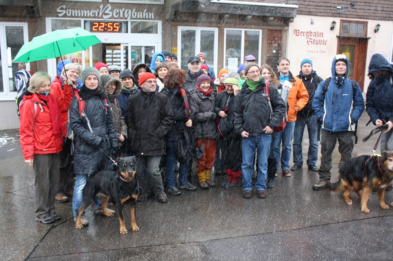 Abfahrt mit dem Omnibus um 14 Uhr an der Haldenwangschule. Um 15 Uhr lassen wir uns von Bad Wildbad mit der nagelneuen Bergbahn auf den Sommerberg bringen und wandern auf den Höhenwegen in einer guten Stunde zur Grünhütte. Dort kehren wir ein zum Essen, Trinken, Schwätzen, wie es uns behagt. Später, wenn es dann draußen schon richtig dunkel ist und man lieber beieinander bleibt, wandern wir weiter vorbei am Wildsee nach Kaltenbronn, wo der warme Bus wartet und uns bis ungefähr um zehn Uhr nach Leonberg zurück bringt.