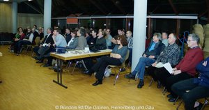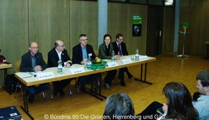 Am Freitag, 1. Februar 2013 lud der Ortsverband Bündnis 90/Die Grünen Herrenberg/Gäu zu seiner Veranstaltung "Grüne im Gespräch" zum Thema Windkraft ein. Moderiert von Dr. Jürgen Scheef diskutierten Dr. Bernd Murschel MdL, Jettingens Bürgermeister Hans-Michael Burkhardt, Wilfried Münch von der GLS Bank Stuttgart sowie Diana Lauer von der BadenWind GmbH mit rund 50 interessierten Bürergerinnen und Bürgern über die Zukunft der Windkraft im Land Baden-Württemberg und in der Gemeinde Jettingen.