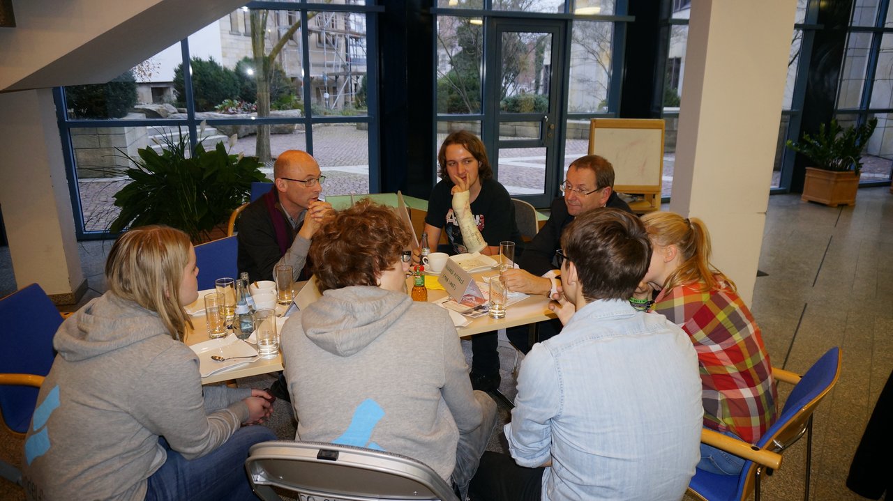 Beim anschließenden Abgeordnetengespräch wurde Bernd Murschel sowohl mit vorbereiteten als auch mit spontanen Fragen der Teilnehmer interviewt. Neben Fragen zum politischen System in Deutschland, zur Arbeit eines Abgeordneten und der Energiewende in Deutschland interessierte sich die Gruppe vor allem für Themen der Behindertenpolitik und die inklusive Gesellschaft. Murschel, dessen Zivildienstzeit in einer Behinderteneinrichtung ihn nach eigenen Angaben stark prägte, zeigte auf, dass die grün-rote Landesregierung zielstrebig daran arbeitet, die Teilhabemöglichkeiten für behinderte Menschen in der Gesellschaft zu verbessern.